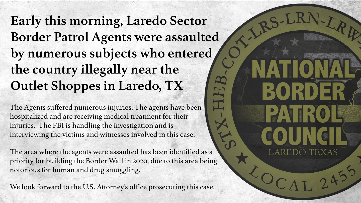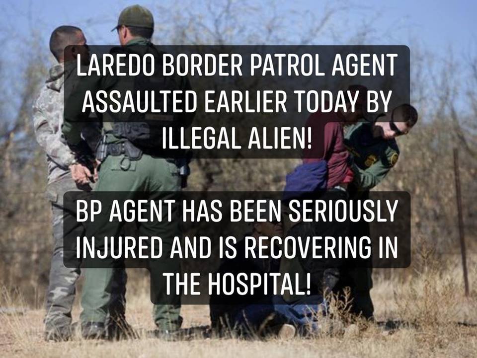 Laredo Border Patrol Agent was assaulted earlier today by an illegal alien from Honduras.