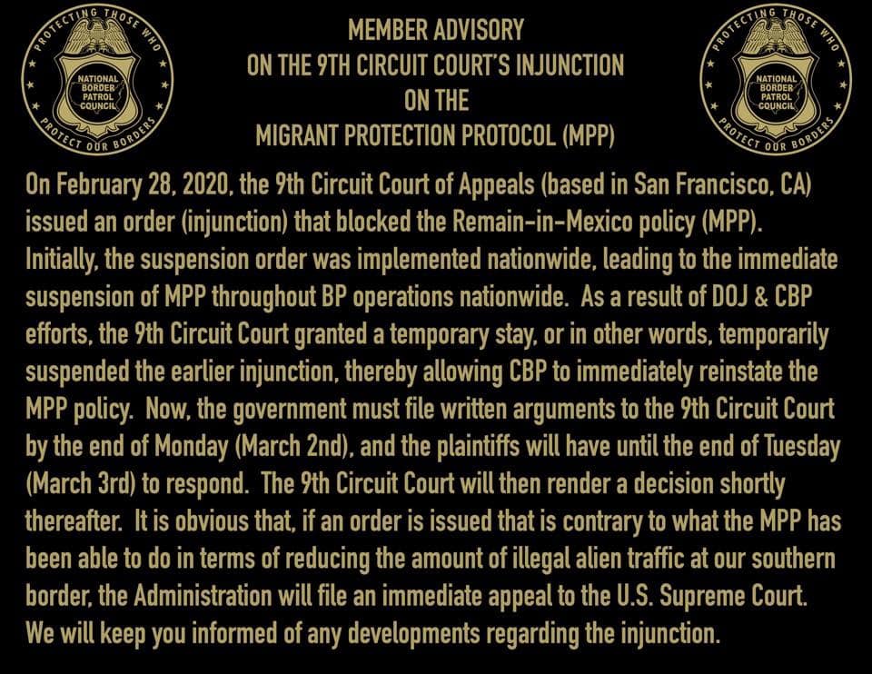 NBPC Statement regarding the 2/28/2020 9th Circuit Court of Appeals decisión affecting MPP.