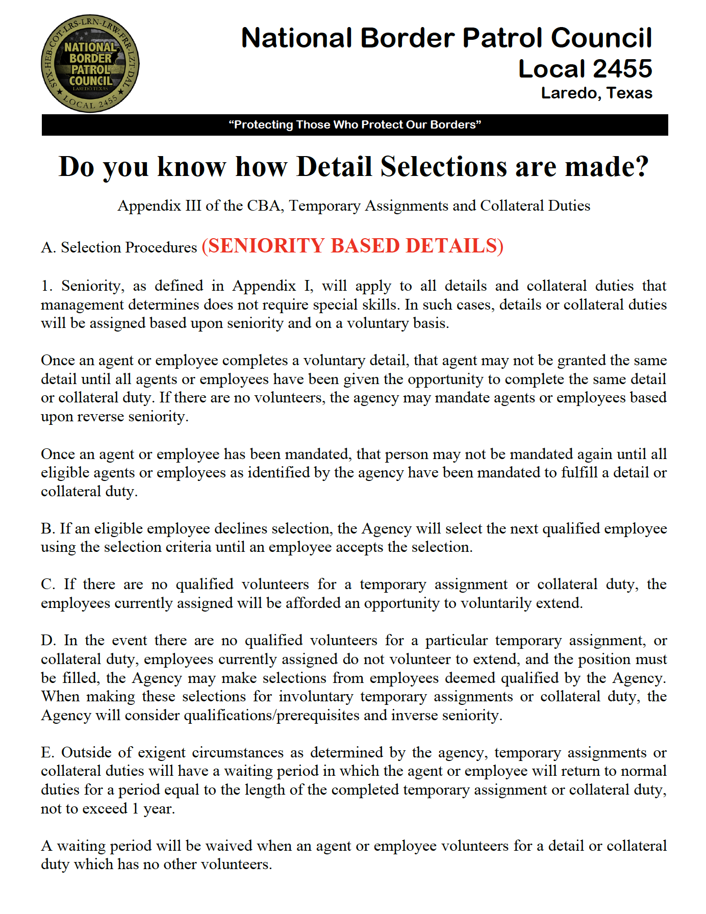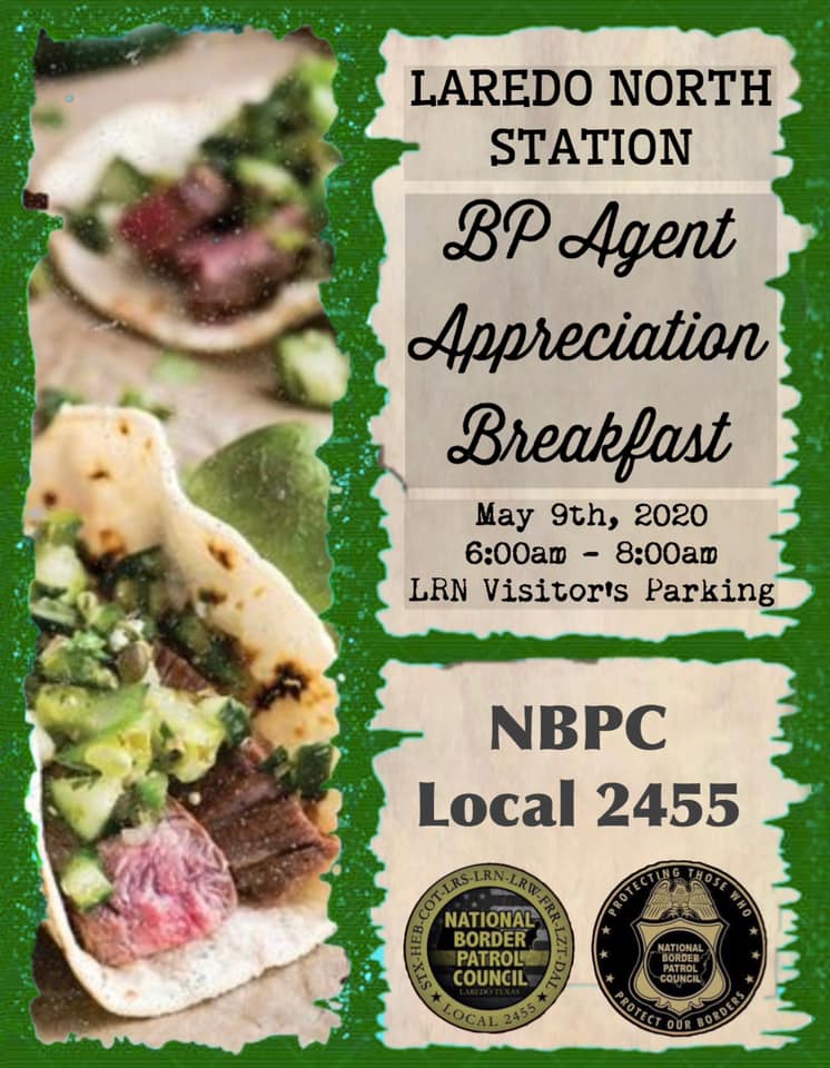NBPC Local 2455: Laredo North Station BP Agent Appreciation Breakfast May 9, 2020 LRN Border Patrol Agents and Support Staff.