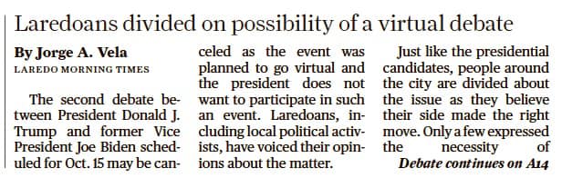 While some Laredoans want a virtual debate, not all agree.