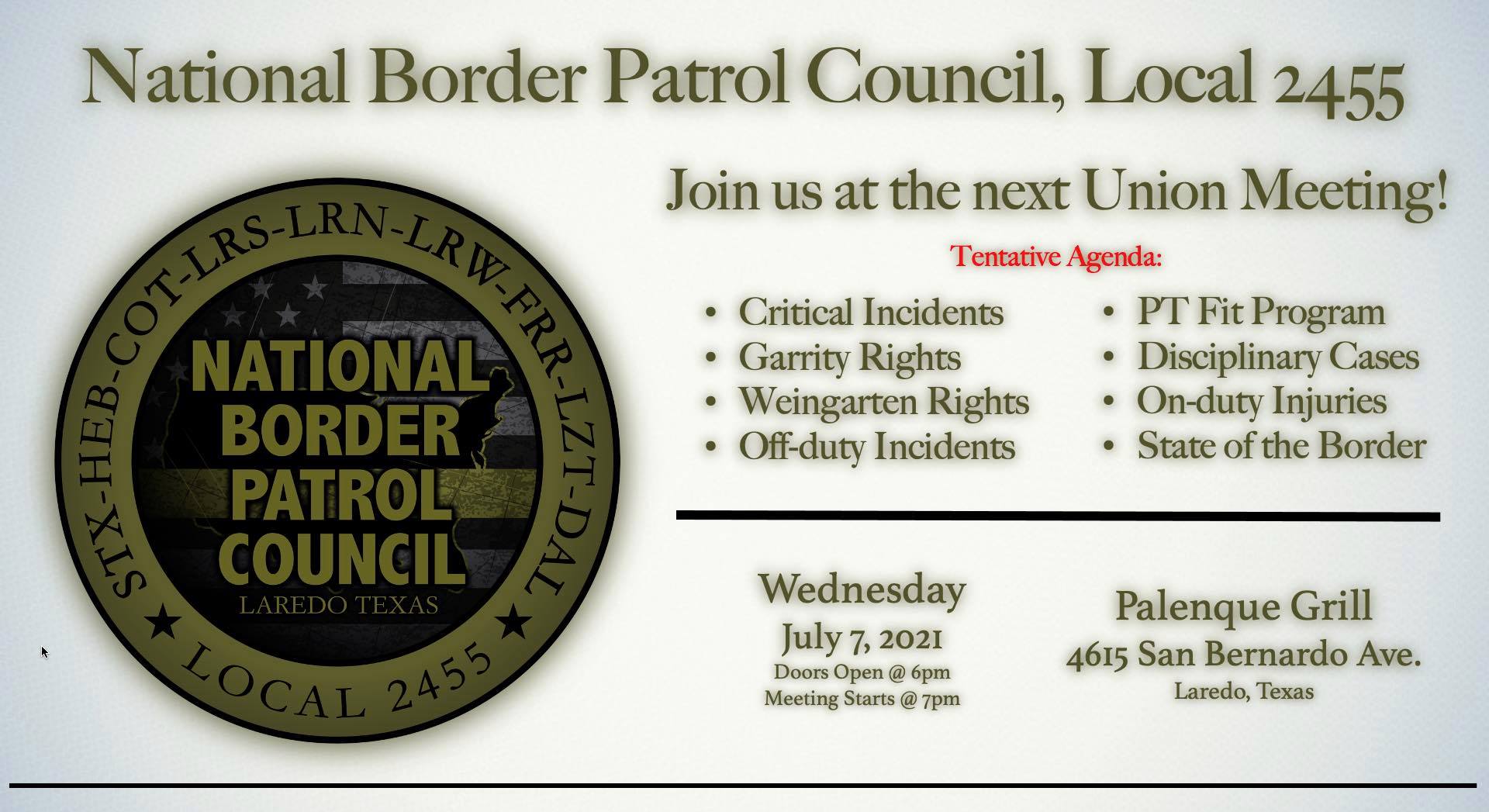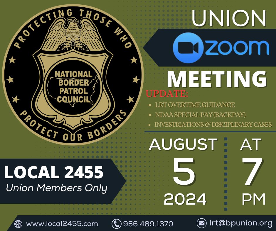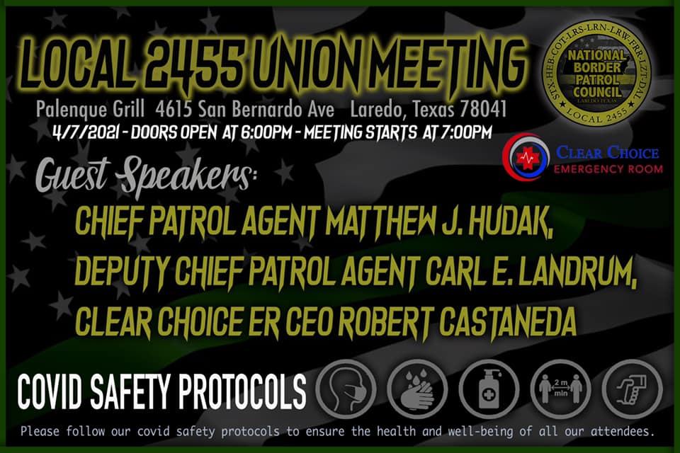 Thank you Border Patrol Agents and Support Staff for attending the April 2021 Union Meeting!!