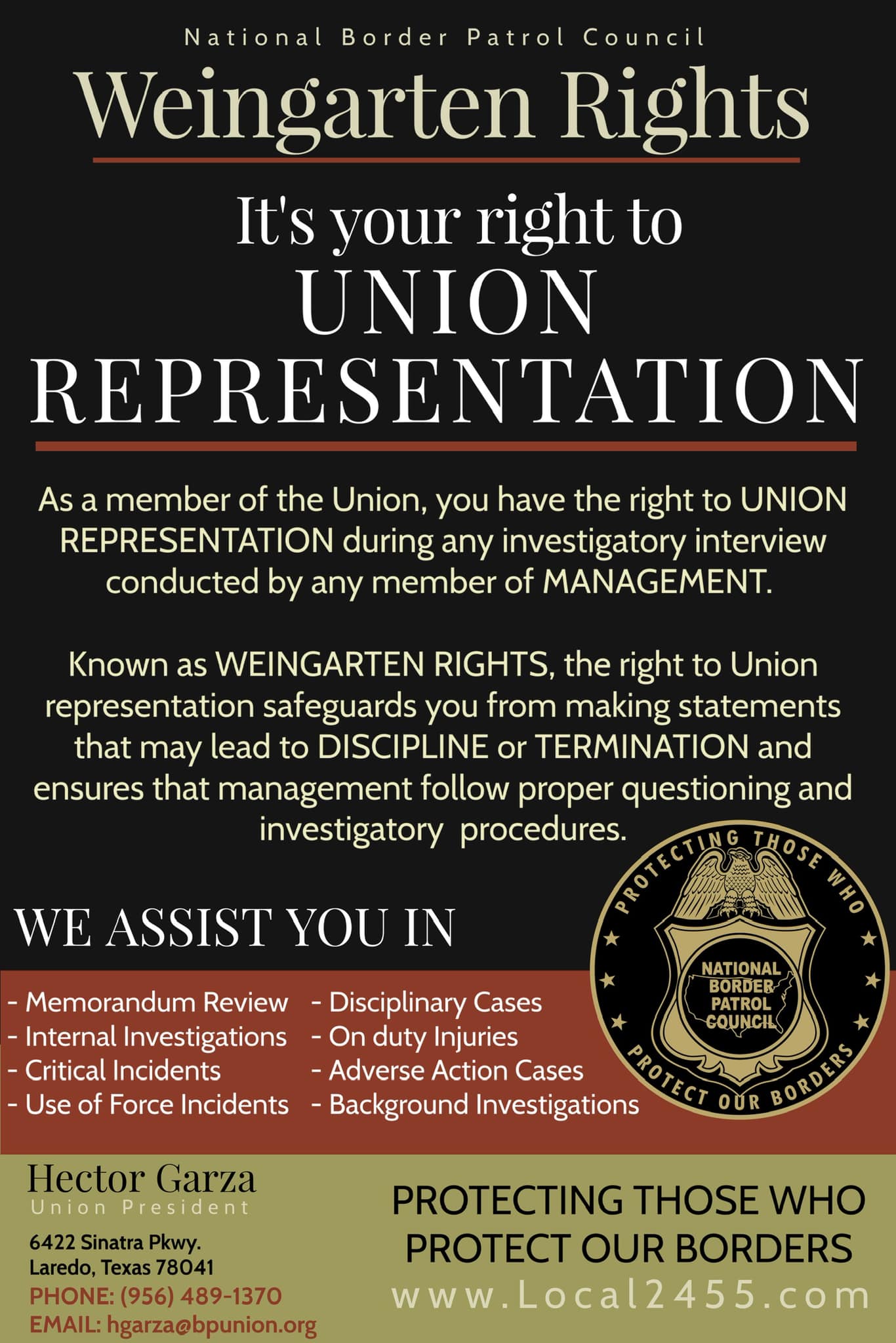 “Illegal aliens that are committing very serious crimes in the United States are not even supposed to be in our country!” – Hector Garza, President NBPC Local 2455